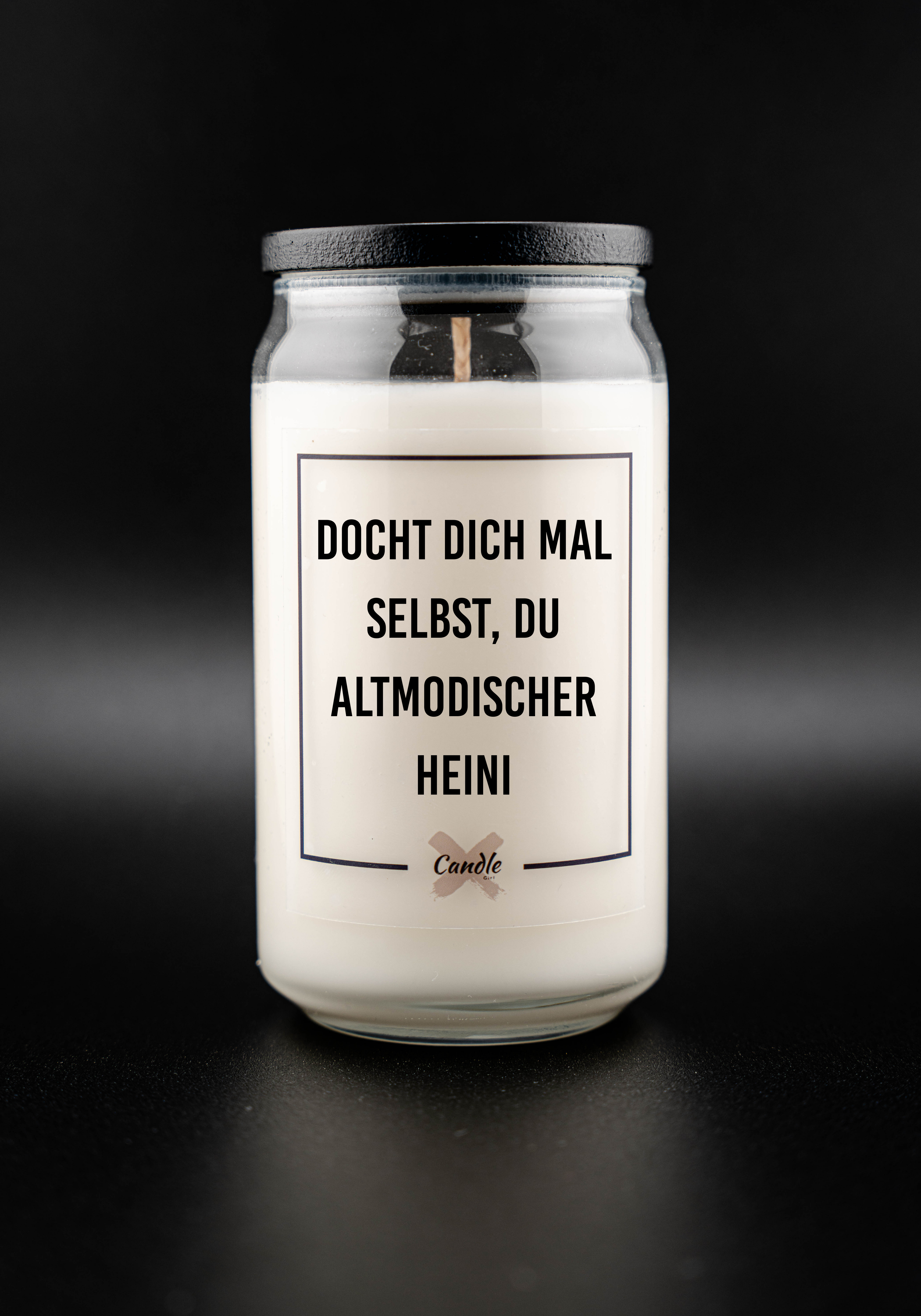 Kerze mit Spruch | DOCHT DICH MAL SELBST, DU ALTMODISCHER HEINI