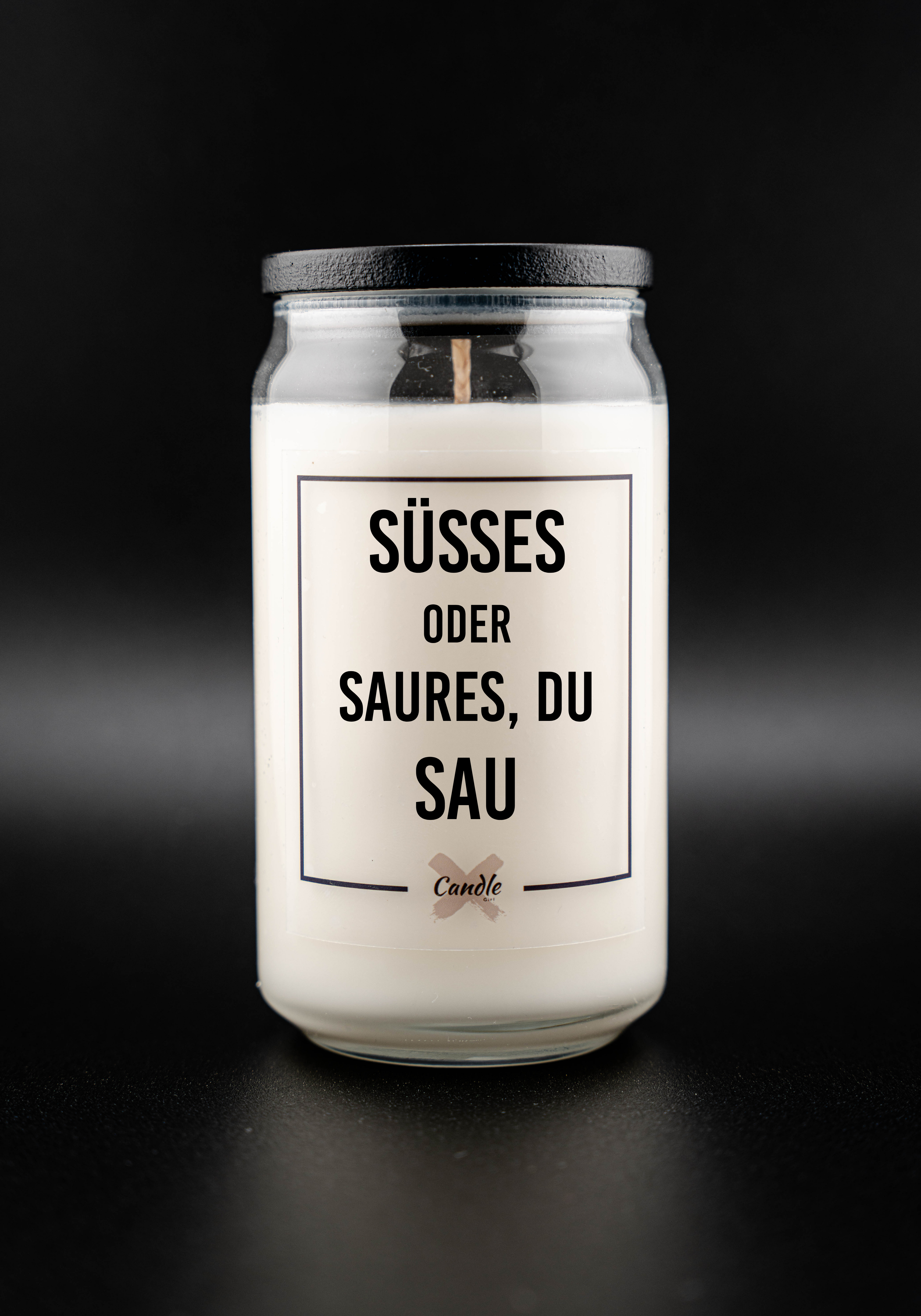 Kerze mit Spruch | SÜSSES ODER SAURES, DU SAU
